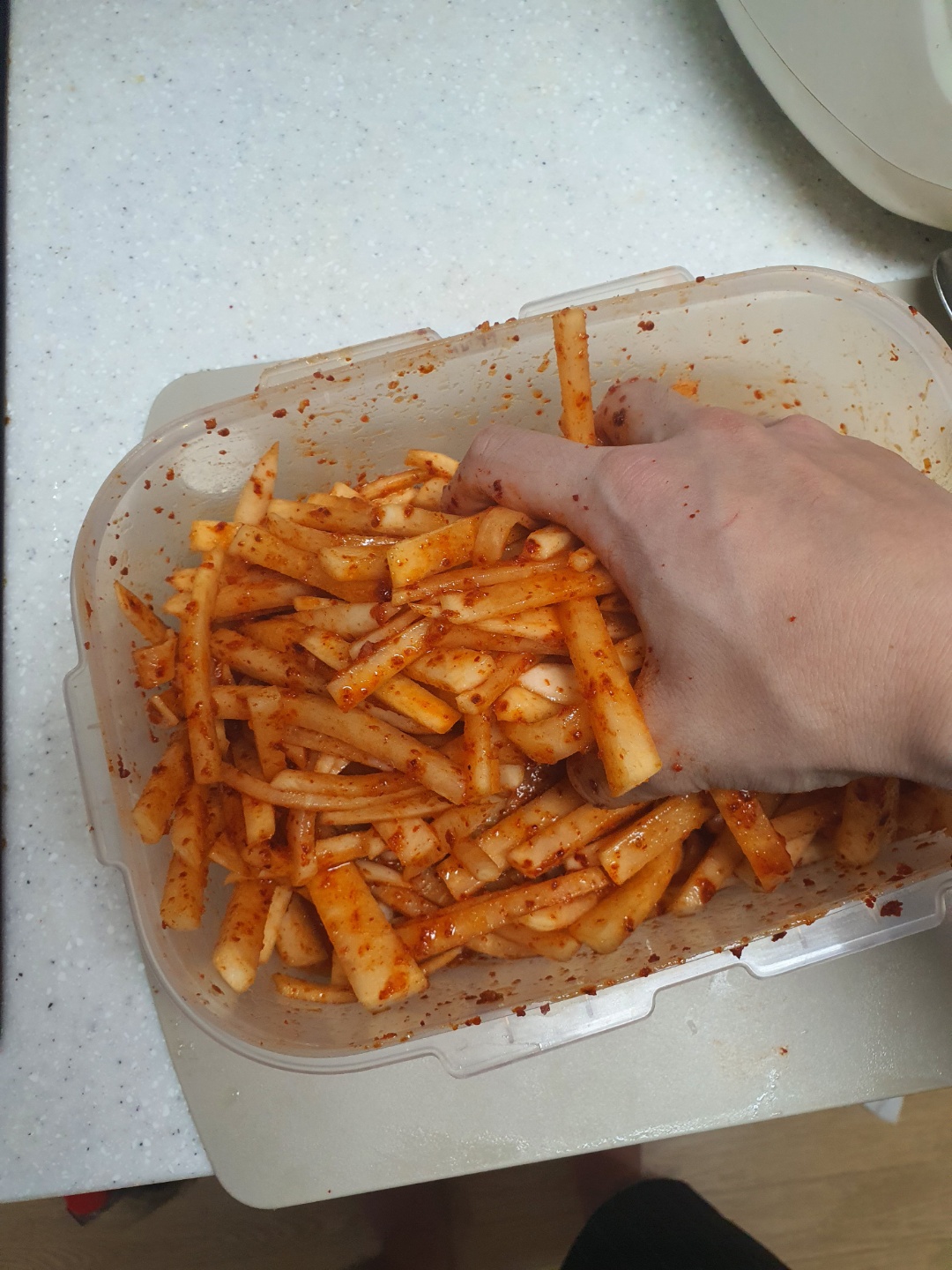 여기서 주먹이란 무생채를 잔득 움켜진 주먹을 말한다; 본인의 주먹이라 생각하면 큰일난다요;;;;;;;;;;;