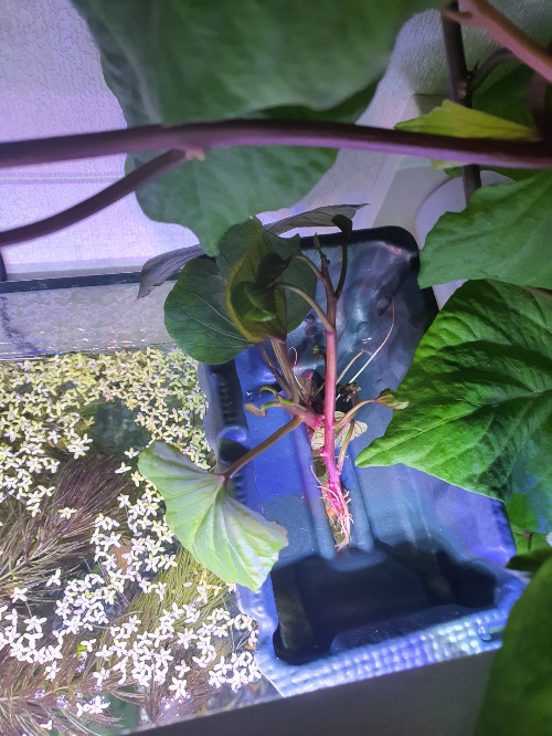 효과 좋고 안보이면 장땡입니다. 고구마 여과기의 효과는 이미 물생활을 꽤나 많이 해본 분들에게는 입증된 생물학적 여과 방법입니다. 고구마는 진짜 엄청난 양의 질산염을 흡수하고 미친듯이 성장합니다. 고구마 여과기가 들어있는 어항의 경우 물에서 진짜 단한번도 냄새가 난적이 없고 효과가 너무 좋아서 설치하게 되었습니다.