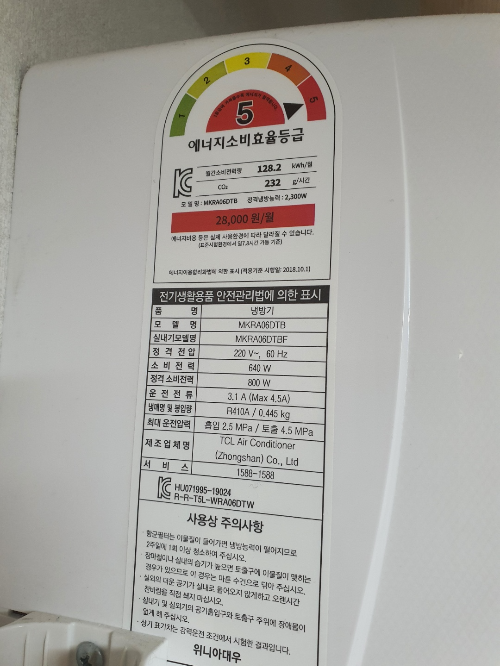 정속형 에어컨은 보통 전력등급이 매우 안좋다. 그래서 보통 4~5등급의 전기효율을 보인다.