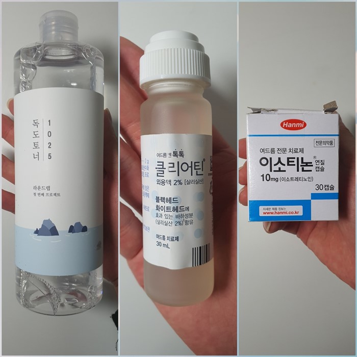 살라실산은 피지를 녹여주는데 특히 효과가 있는 물질로, 소위 톡톡이라고 불리는 크레오틴 티는 항생제가 들어있어서 의사의 처방을 받아야만 구매 할 수 있습니다. 하지만 클리어틴의 경우 약사의 처방으로도 충분히 구매 할 수 있습니다. 여드름은 의료보험이 안되는 미용으로 구분 되기 때문에 대부분 비용이 엄청나게 많이 발생합니다. 또한 클리어틴에 함유된 살라실산 경우 비교적 순한 물질로 화장품에도 포함되어 있지만, 화장품에 포함된 양과 다르게 2%라는 다량이 치료제로 사용되는 것이기 때문에 너무 많은 사용은 자제하는 것이 좋습니다. 확실히 바르면 화이트헤드 즉 좁살 여드름에는 효과가 있고 화농성여드름의 경우는 큰 효과를 못본 것 같습니다. 세안 + 독도토너에 한계가 왔을때 클리어틴을 사용하면 여드름이 빠르게 가라앉고 피부과 정돈 되는 것을 느낄 수 있습니다. 클리어틴까지 사용하지만 피부가 견디지 못하는 상태라 함은 일반적인 좁쌀 여드름이나 각질 피비의 문제가 아닌 상황이라고 할 수 있습니다.