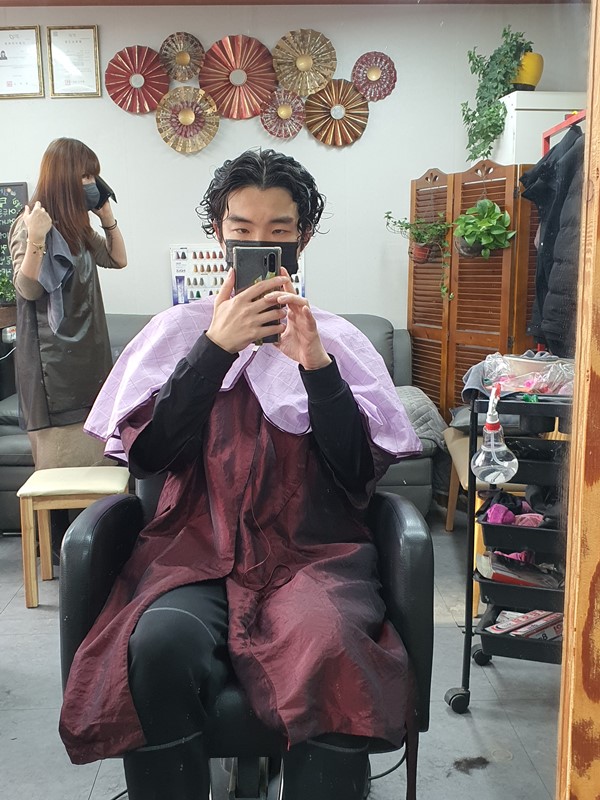 이것이 파마한 다음 머리 말린 후 모습입니다. 파마가 다풀려서 직모였던 모습에서 머리에 파마끼가 가득하여 싱그러운 모습입니다. 저는 이모습을 굉장히 좋아하고 별 신경 쓰지 않아도 잘 관리가 되므로 선호합니다. 넘성분들은 꼭 해보시길 바랍니다. 사촌동생들이 20~30만원 주고 한 머리보다 오히려 나아서 사촌동생들도 방문하게 되었었습니다.