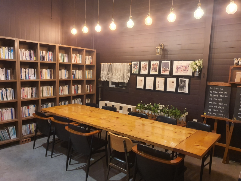 이곳이 동호회나 모임 장소로도 괜찮은 이유가 매우 조용하게 유지되는 분위기와 동시에 넓은 협탁이 있어서