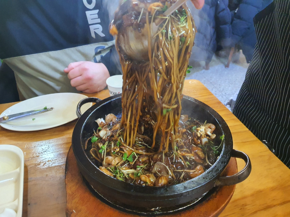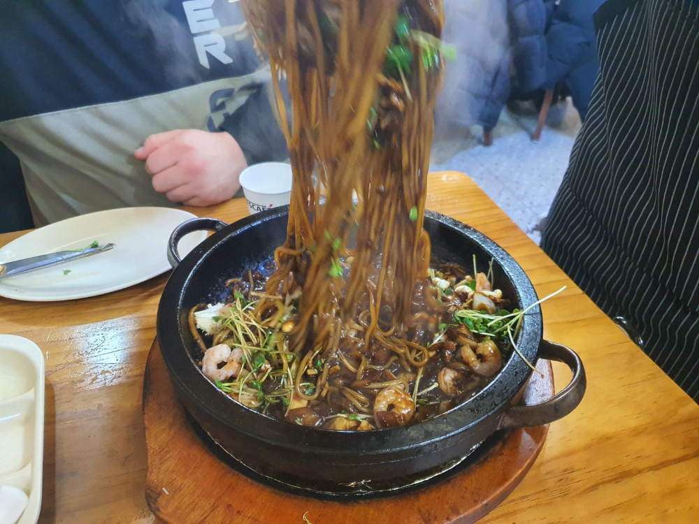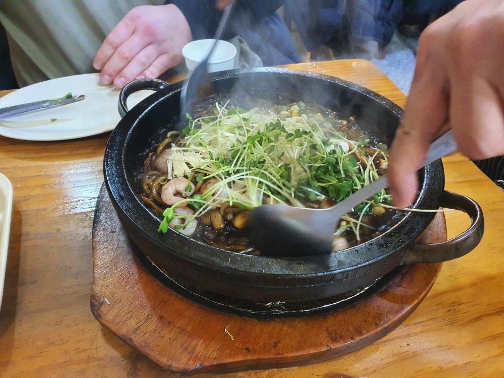 돌짜장이 나왔다. 나오면 사장님이 같이 나와서 바로 앞에서 볶아주신다.