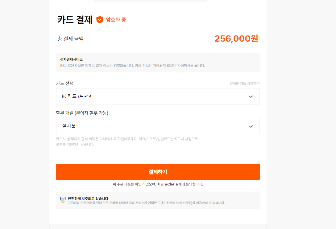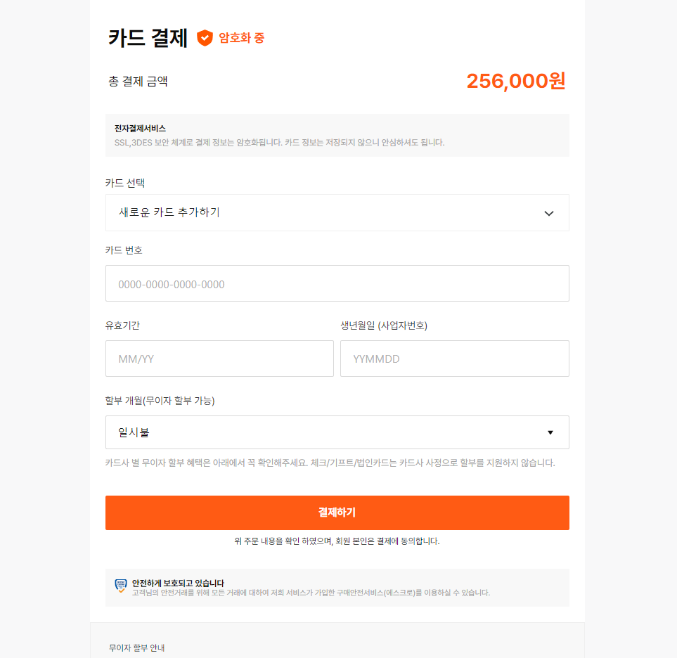 카드 정보를 입력해 주면 되고 할부는 일시불로 해야합니다.