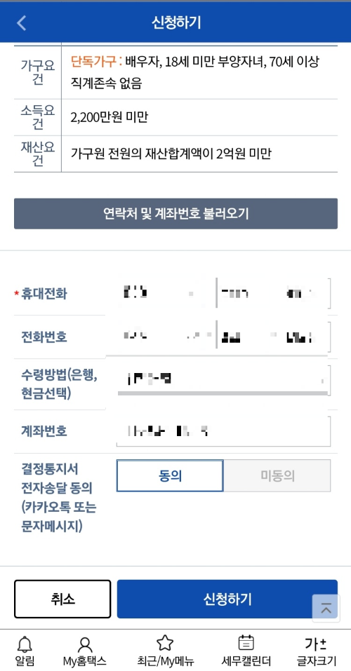 저절로 입력 되는 것 외에 본인의 전화번호 은행 계좌번호 등을 입력한 후
