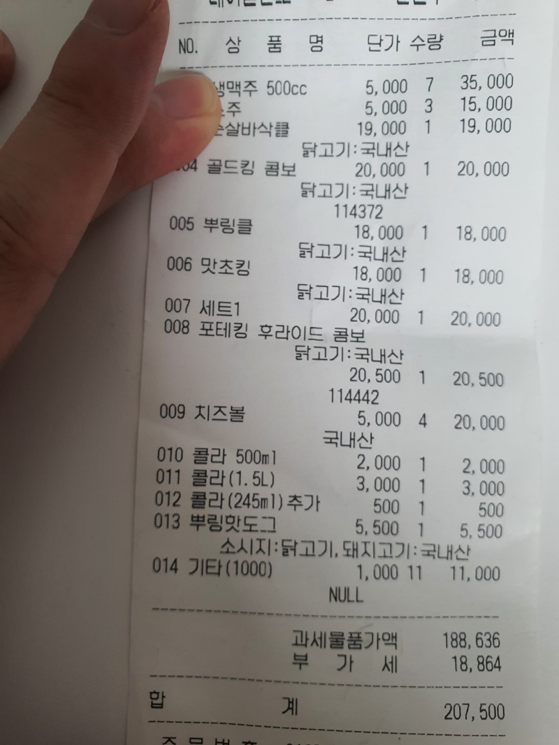 계산서 20만원 다른계산서 까지 하면 32만원 ㄷㄷ... 인원이 많아서 1인당 1만 7천원 꼴이여서 괜찮았습니다!