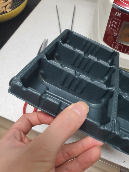 이것저것 물건을 뒤적거리다가 발견한 스팸상자인데 저 모서리 부분이 어항에 딱 맞을 것 같다는 생각이 들어서 잘라서 만들어봤습니다. 중간에 구멍을 뚫고 새순을 넣는다면 딱 일거라는 생각이 머리에 스쳐지나갑니다.